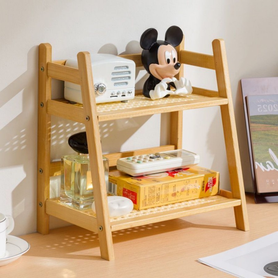 Bambu ve Ahşap Tepsilerle eşleştirilebilir. Doğal rattan ve güçlü bambu çerçeveden yapılmış bu raf çevre dostudur, dayanıklıdır ve dokunuşu pürüzsüzdür. Çok katmanlı açık depolama alanı, belgelerin, kırtasiye malzemelerinin, uzaktan kumandaların, kozmetiklerin ve diğer küçük eşyaların sınıflandırılmış şekilde yerleştirilmesi için tasarlanmış olup masaüstünüzü daha düzenli ve daha verimli hale getirir. Evlerde, ofislerde ve çalışmalarda yaygın olarak kullanılabilir. Ayrıca mutfak depolama verimliliğini artırmak için mutfak gereçlerini, sofra takımlarını ve baharat şişelerini saklamak için